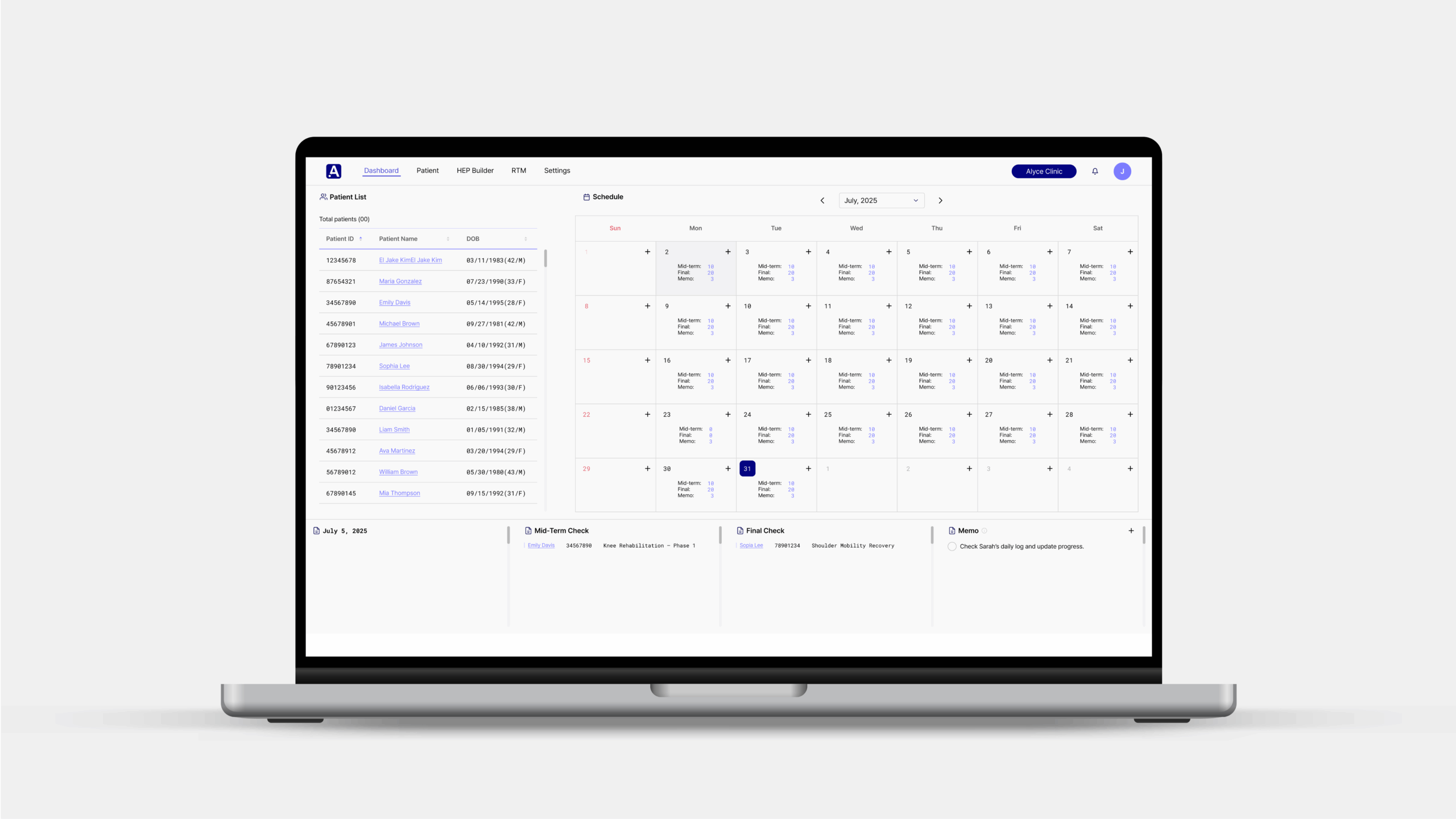 Review progress on your dashboard and confidently bill for your remote services. Comprehensive scheduling and monitoring tools help you manage patient care efficiently.